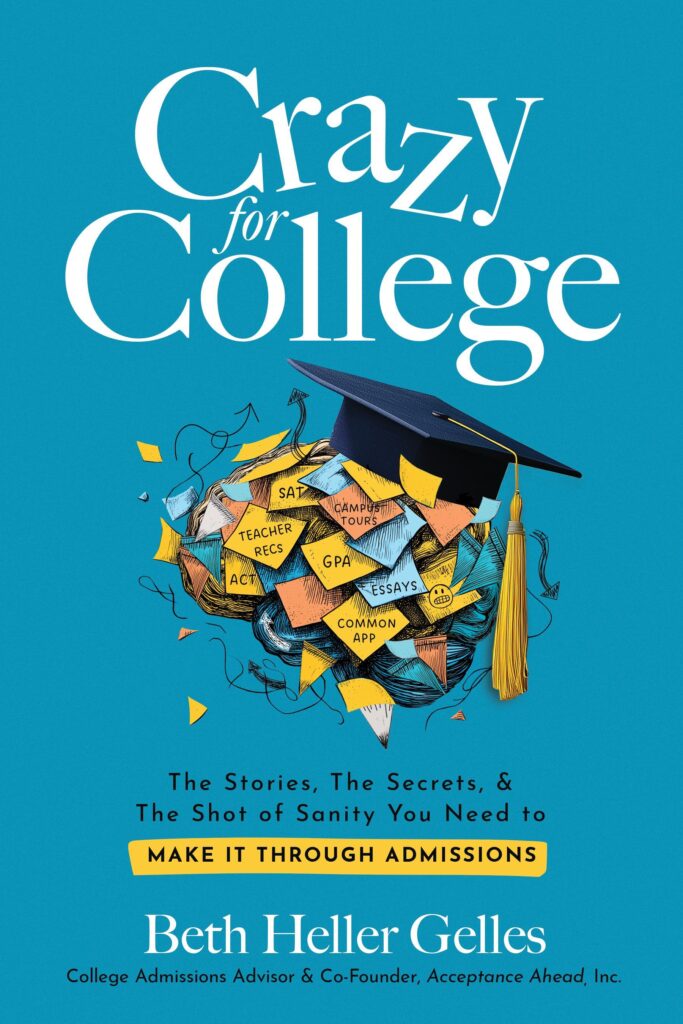 “Reading Crazy for College felt like sitting in a living room with Beth Gelles, listening to her stories and hard-earned wisdom about the admissions journey. College admissions today can feel like a high-stakes guessing game—rules keep shifting, competition is fierce, and colleges aren’t making it easier. With compassion and a welcome touch of humor, Gelles cuts through the noise and captures the full emotional rollercoaster: confusion, stress, hope, excitement. She offers reassuring advice every family needs to hear: your kid is going to be okay, this process isn’t about winning or losing, and there’s a right-fit college for every student.”